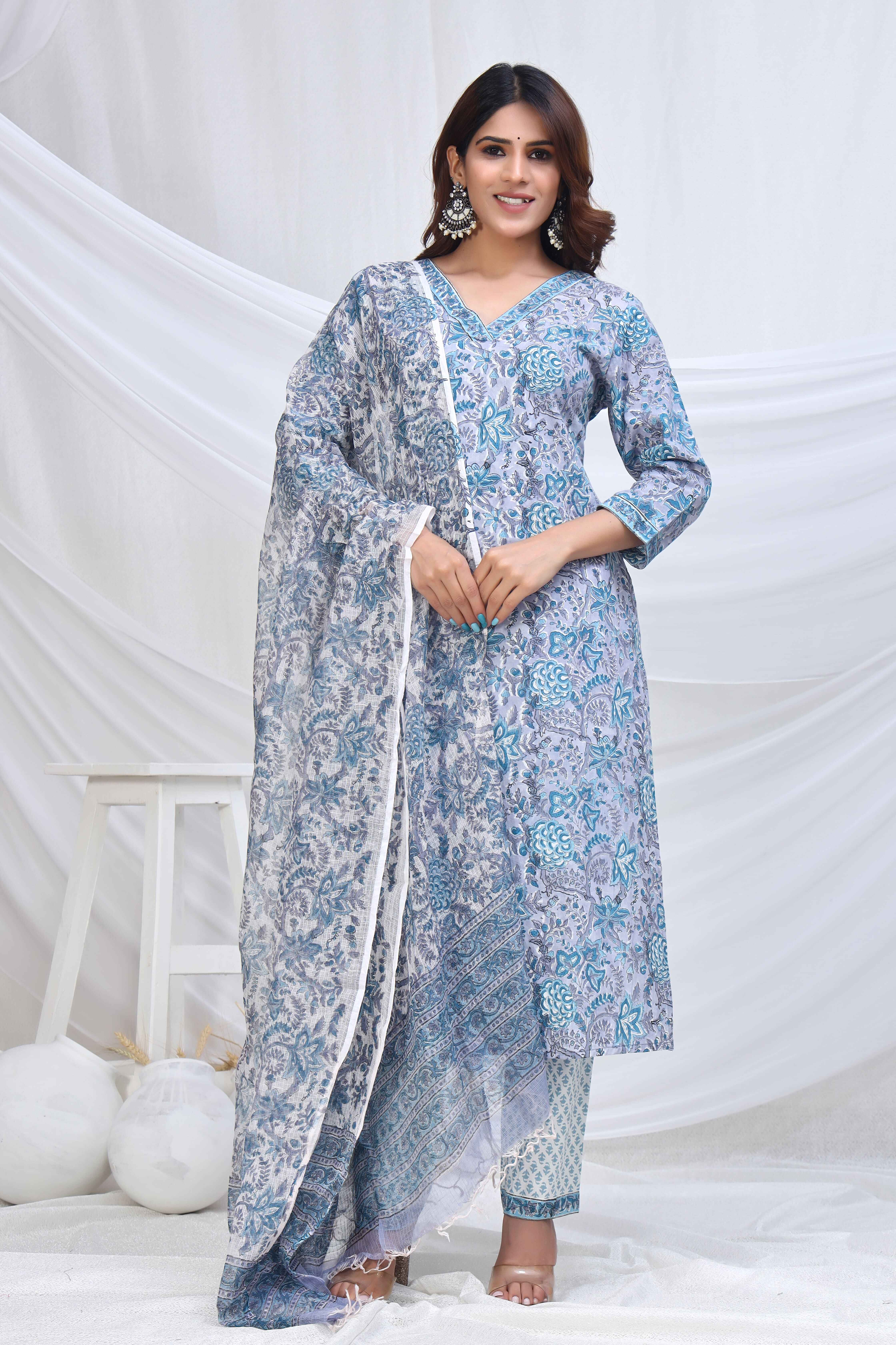 BLUE BOOTI HANDBLOCK PRINT SUIT SET