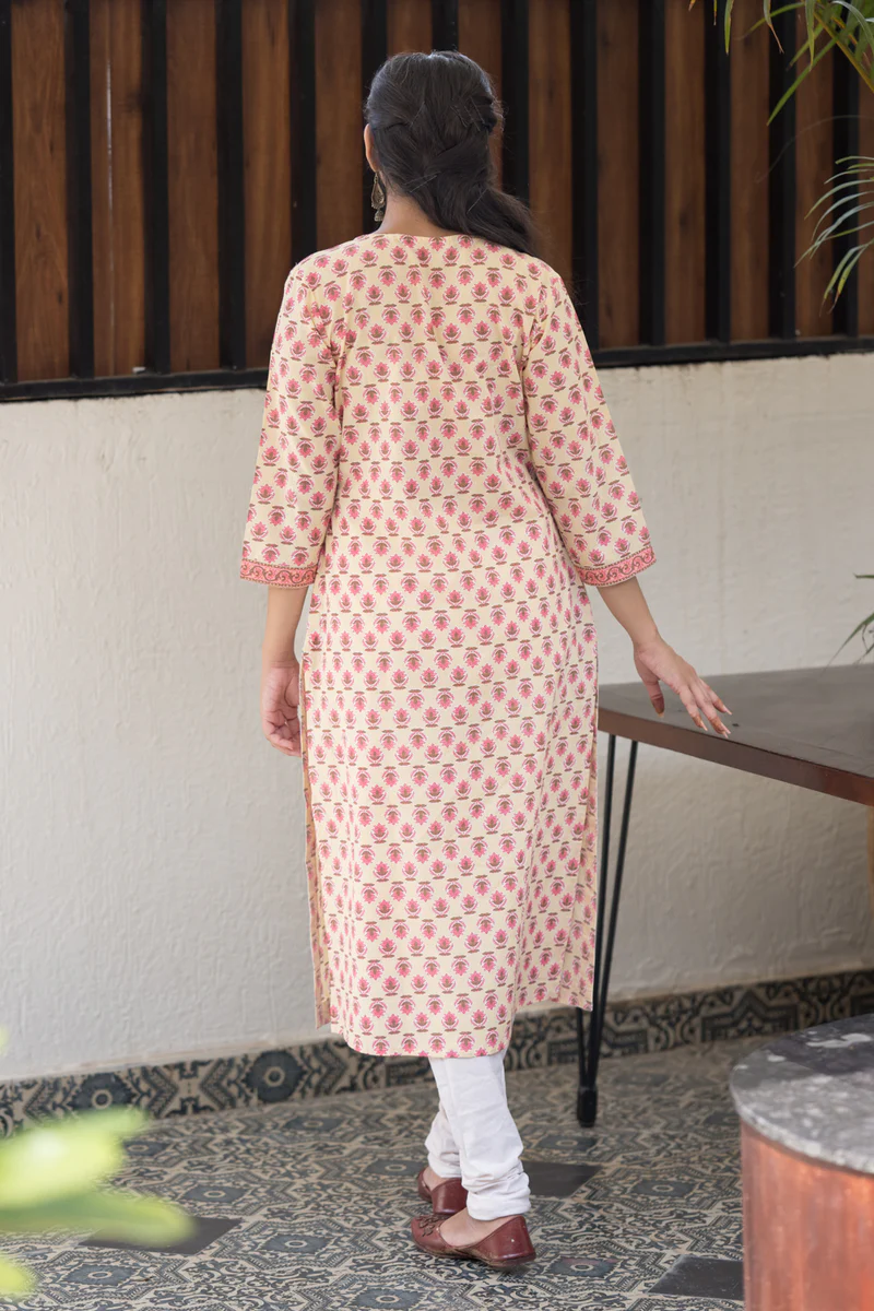 COTTON STRAIGHT KURTI - Pink Lotus Flower Buti was added to your shopping bag. View your shopping bag