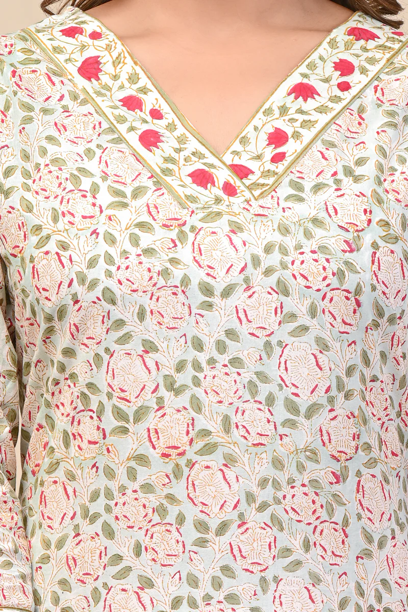 Brighten up your wardrobe with Sanganeri print Cotton straight kurti and treat yourself Handcrafted.