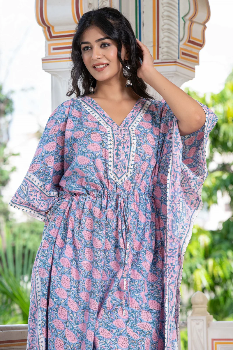 FLOWER JAAL HANDBLOCK PRINT KAFTAN